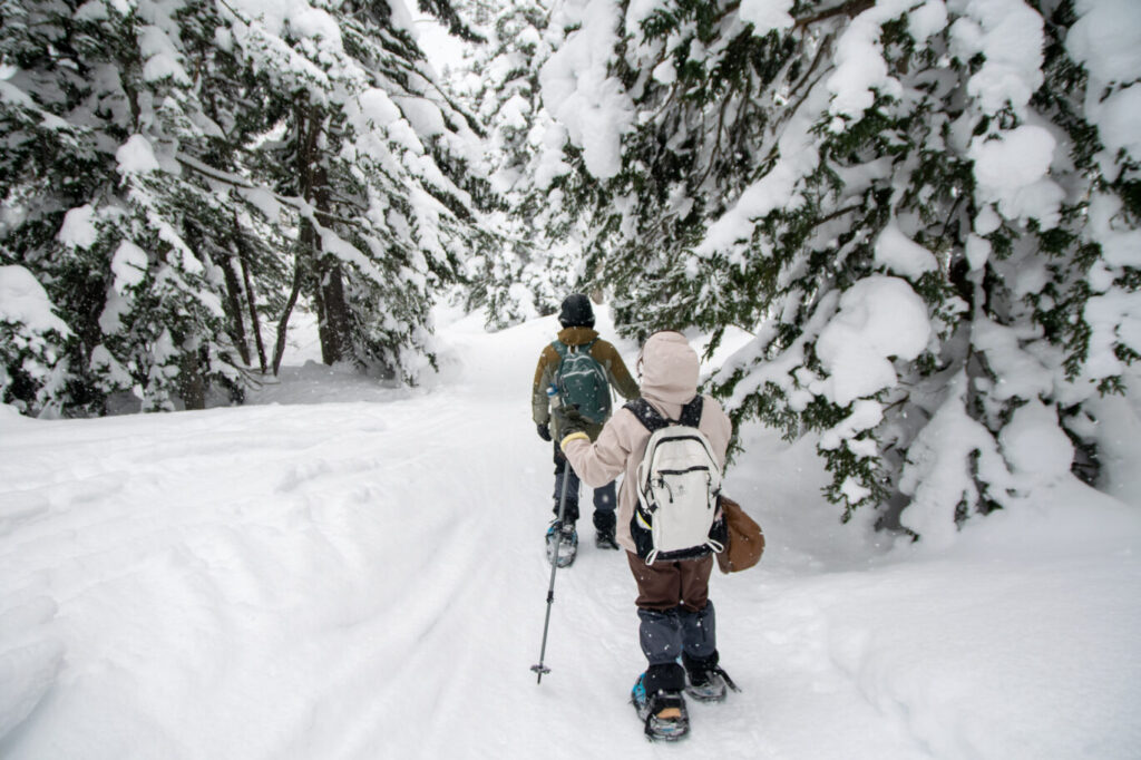 After experiencing nature on snowshoes, warm your chilled body in a hot spring.